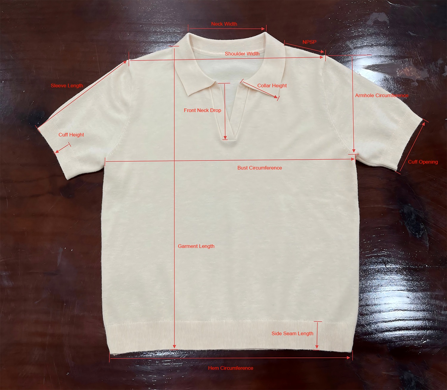 • Chest/Bust Circumference: This is the most critical measurement.    Method: As illustrated, measure straight across the sweater from 1-2 cm below the armhole. Multiply this number by 2 to get the full circumference.