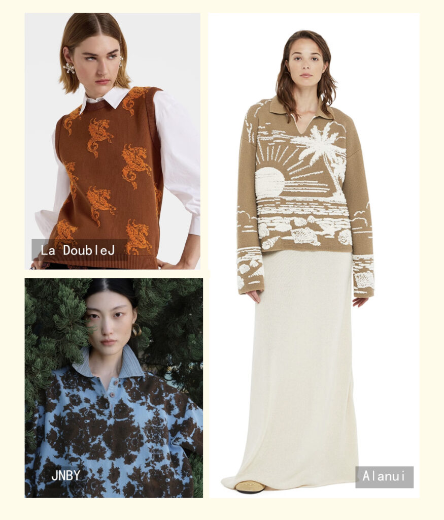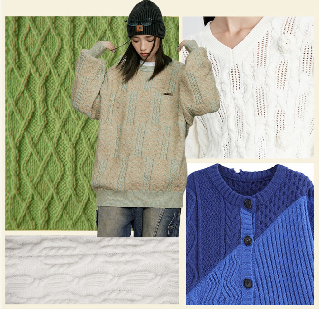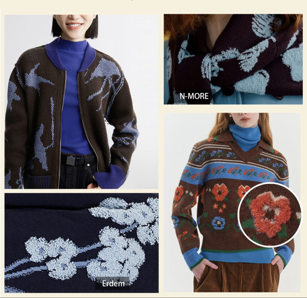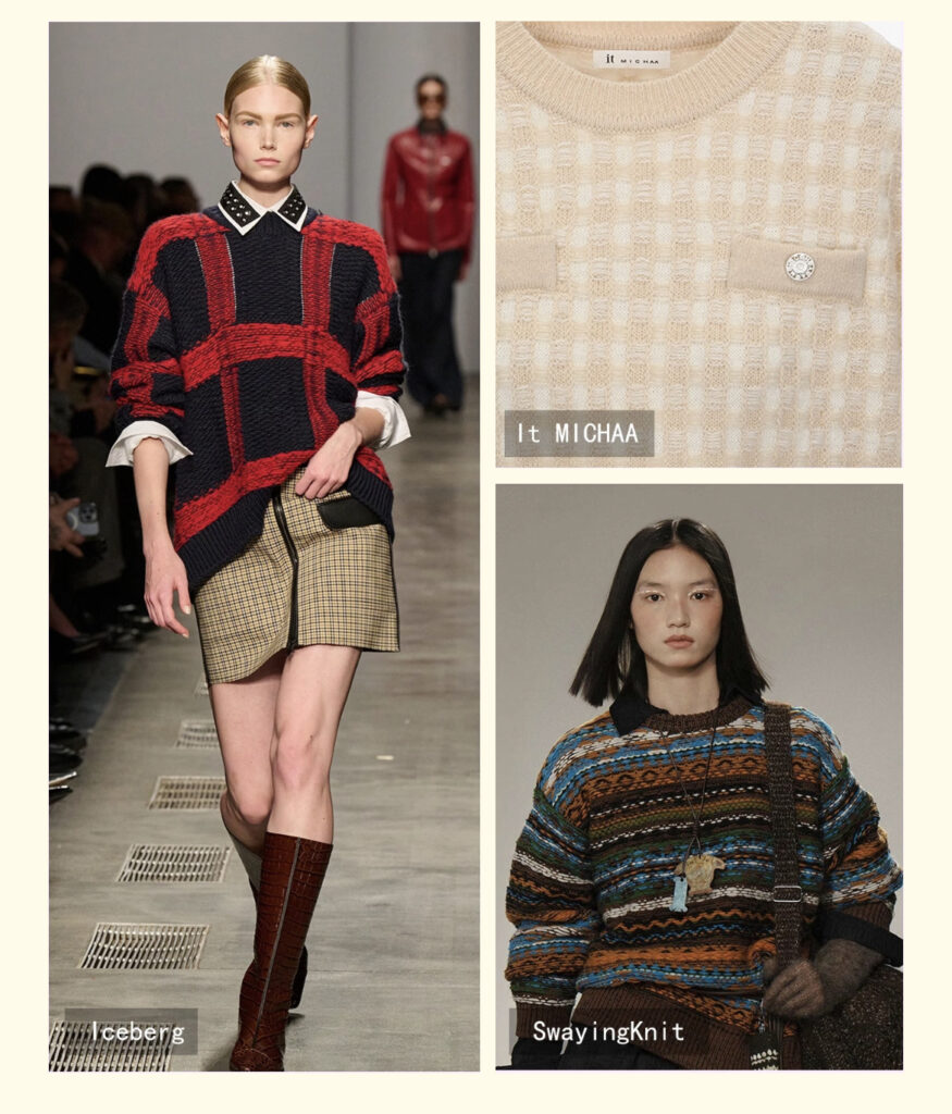 Retro jacquard utilizes bi/multi-color constructions with needle reversal for dimensional textures, achieving fashion-casual equilibrium through pattern innovation, chromatic play and stitch variation