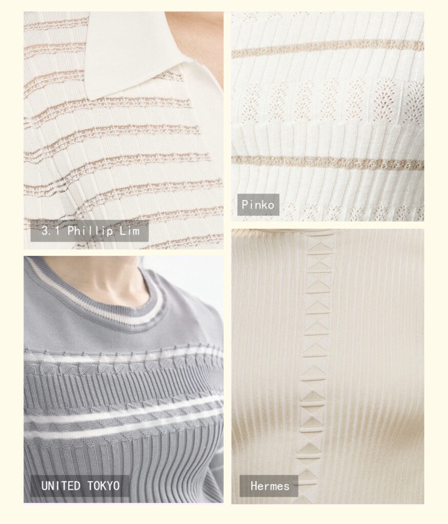 Pique stripes transcend basic structures when hybridized with jacquard/fancy yarns ,Their chromatic textures and multi-color interplay generate transformative surfaces for knitwear.